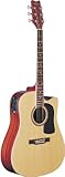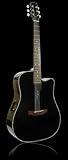 MODEL ECR1-B SERIES Solitaire BODY STYLE Cutaway Dreadnought FINISH Black Pearl TOP Solid Spruce BACK Solid Mahogany SIDES Mahogany SCALE 25 5/8" NUT WIDTH 1 11/16" PICKUP SYSTEM AB4-1 Balanced Preamp System OverviewAll Boulder Creek guitars feature solid tops, solid backs, and laminated sides for strength and durability. The tops, sides, backs, and necks are selected from high quality woods from all over the world. Both solid spruce and solid cedar tops are available. Backs and sides are available in both mahogany and rosewood. Features and SpecificationsThe Solitaire Series uses the same SBS bracing system as the Stage & Studio Series guitars. The Solitaire was designed for the player, not the audience. Rather than a front port to project the sound outward, the Solitaire features a port on the top side of the guitar to direct the sound to the player. Since guitar players spend over 90% of the time playing with just themselves and their guitar, the Solitaire is the perfect choice for your second guitar.There were some interesting results when the first Solitaire samples arrived. Even though the guitars were designed for the player and not the audience, the front sound projection was incredible. Since the soundboard increased in size due to not cutting a hole in the front, it produced more treble, midrange, and overall volume. The sound port on the top of the guitar produced enhanced low range frequencies which could be heard all around the room as low frequencies are omni-directional. In other words, this guitar sounds incredible out front also! When partnered with the AB4-T Preamp system, it makes the perfect guitar for stage, professional recording, and home studio applications. With the Solitaires great playability and tone, its the perfect choice for any working musician. (And it also looks really, really cool.)